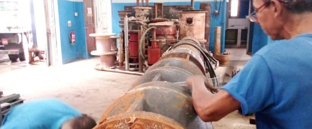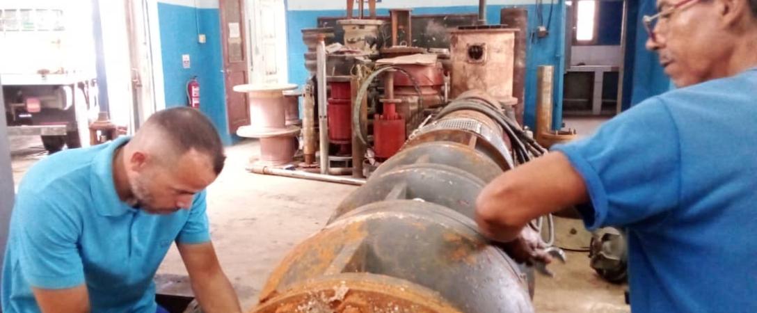 #HidráulicosXMiHabana, La Gobernadora Yanet Hernández y el primer Secretario del PCC Liván Izquierdo, visitan el taller de Maquinado y Enrollado de la subdirección de Electromecánica, allí se encontraban los trabajadores realizando un diagnostico a la bomba sumergible del equipo No6 de Paso Seco, para comenzar su recuperación.#SomosServidoresPúblicos, #AguasDeLaHabana, #INRHCuba